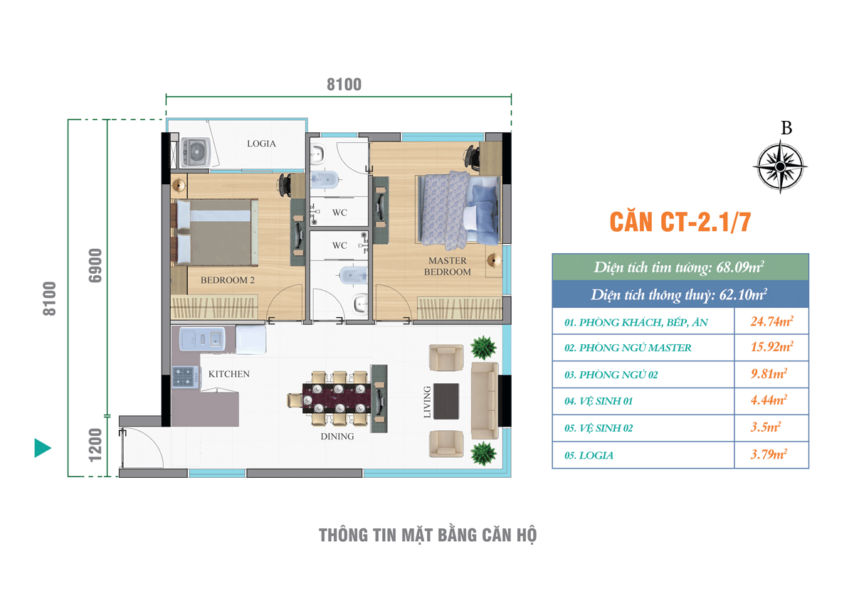 - “May đo” trong bố trí: chăm chút từng chi tiết như phương tiếp sáng là phương dài, tối đa lượng sáng cung cấp cho căn hộ, bếp đóng, có sàn nước và thùng rác phân loại tại nguồn