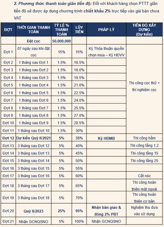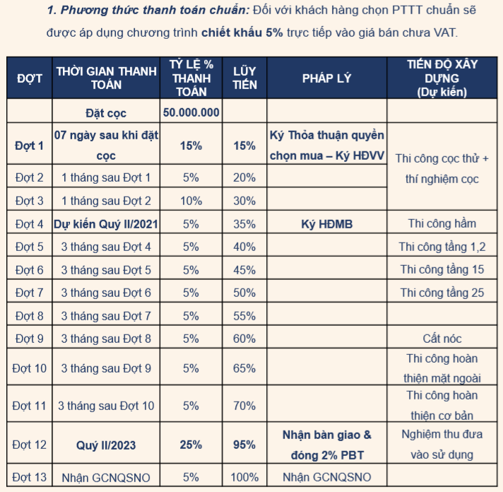 ►Phương thức thanh toán: DHA cũng đưa ra Phương thức thanh toán cực kì linh hoạt, chia làm 13 đợt: