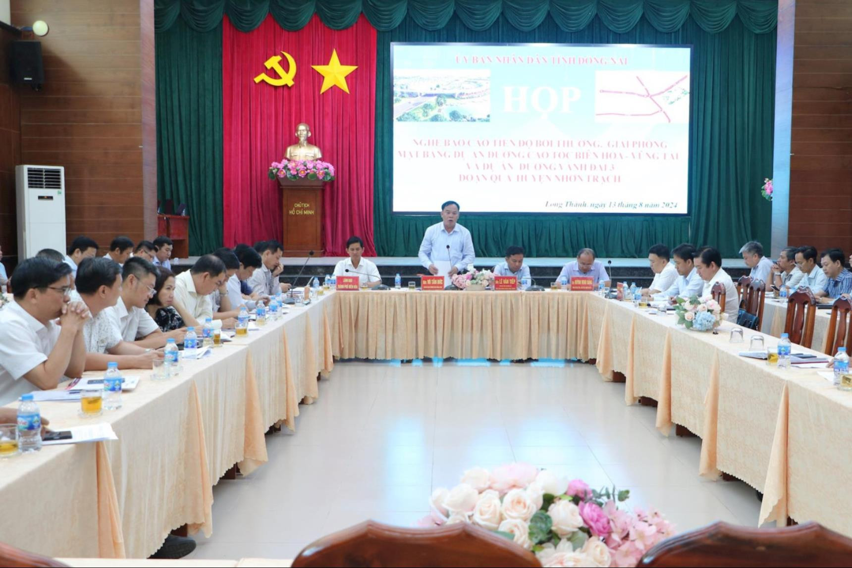 Ngày 13-8, UBND tỉnh Đồng Nai làm việc với các sở, ngành, địa phương về tiến độ công tác bồi thường, giải phóng mặt bằng Dự án cao tốc Biên Hòa – Vũng Tàu và Dự án đường Vành đai 3 – thành phố Hồ Chí Minh.
