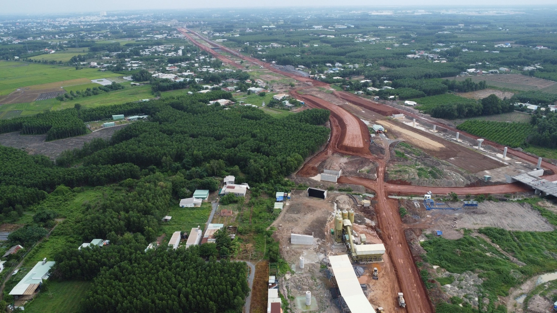 Thi công dự án cao tốc Biên Hòa – Vũng Tàu đoạn qua địa bàn huyện Long Thành, tỉnh Đồng Nai. Ảnh: Nghiêm Ý