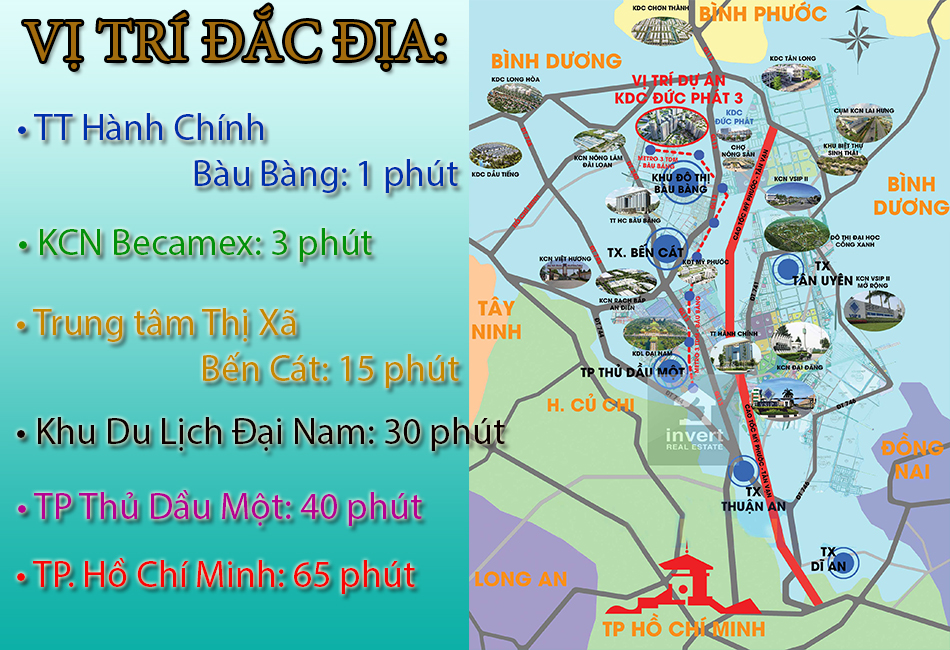 Vị trí Khu Dân Cư Đức Phát 3 Nằm ngay trung tâm hành chính Bàu Bàng, trong lòng Khu Công Nghiệp Becamex Bàu Bàng – Là nơi kinh tế trọng điểm của khu vực.