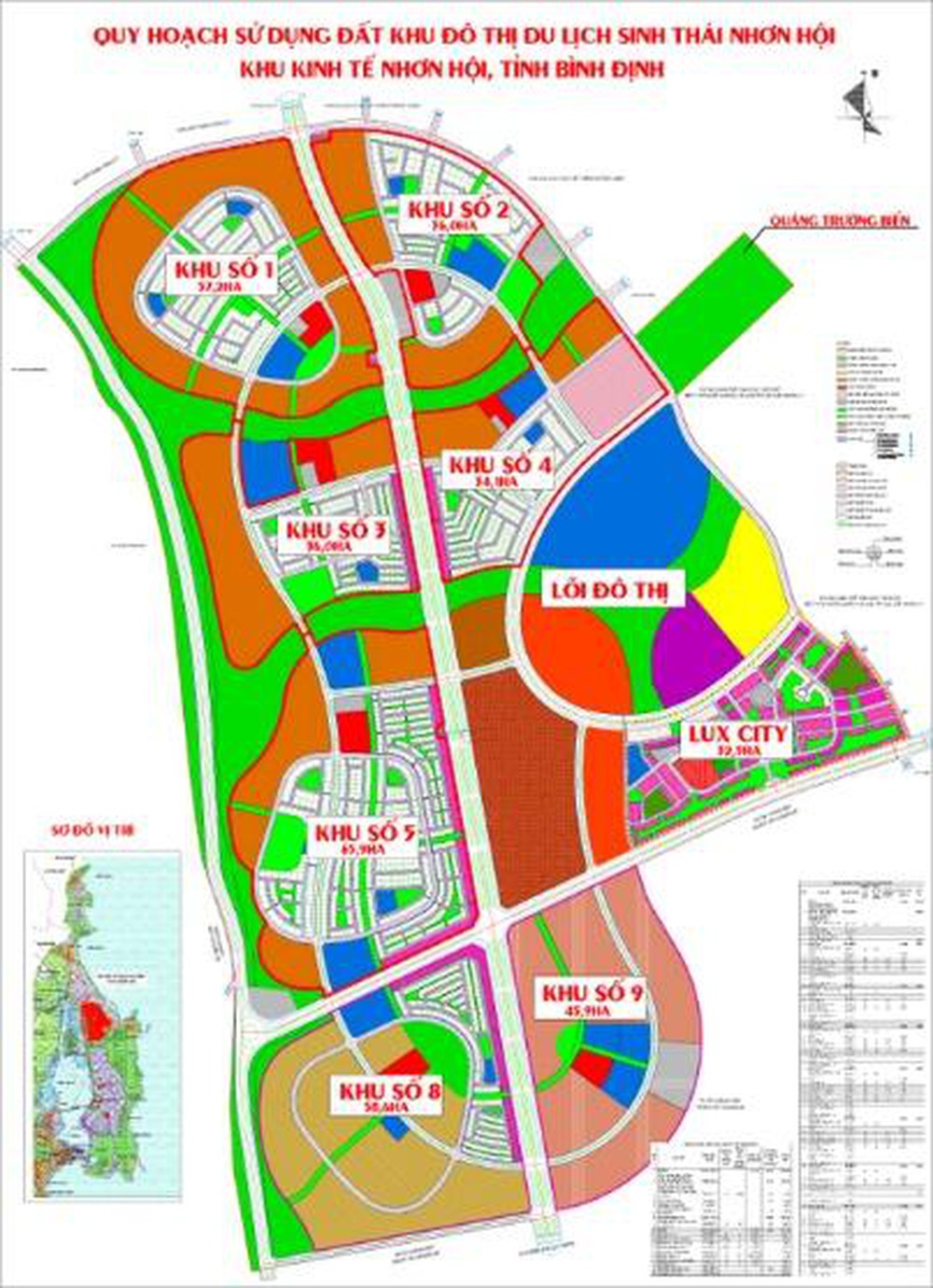 Bản đồ quy hoạch sử dụng đất khu đô thị du lịch sinh thái Nhơn Hội, Bình Định.